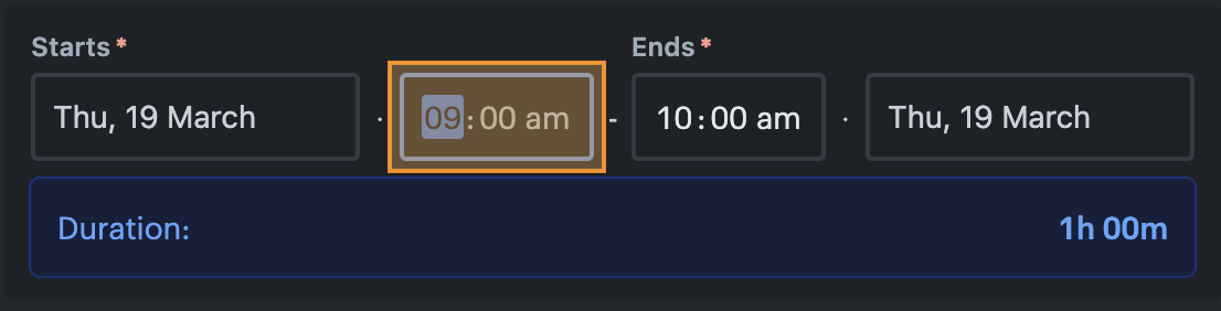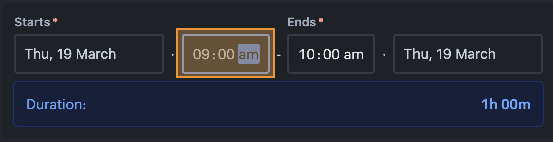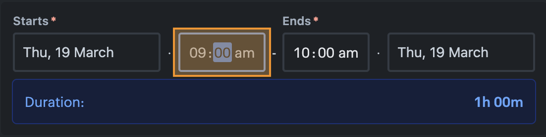 ⚠️ By design, we don’t prevent invalid values being entered for start time and end time.