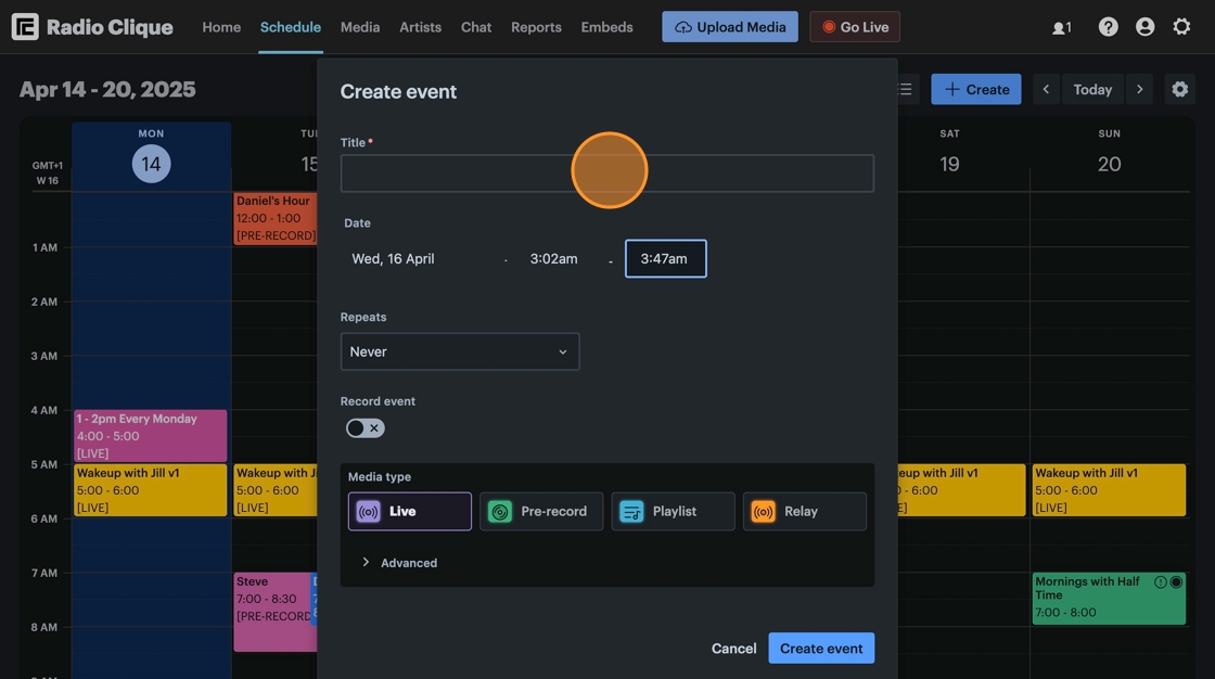 1. Navigate to https://app.radiocult.fm/schedule