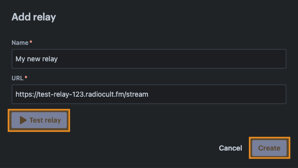 - Enter the URL of the relay (an audio URL),