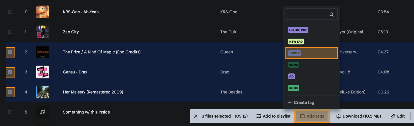 Think of tags as a super-flexible filing system for your tracks. You can give any piece of media as many tags as you want, which makes it easy to: