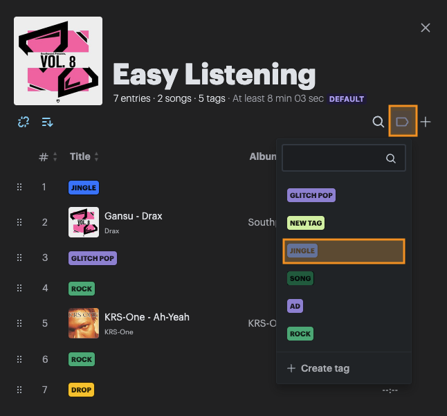 We’ll explain what effect adding a tag to any playlist has on what is broadcast from your station’s stream in the next section.
