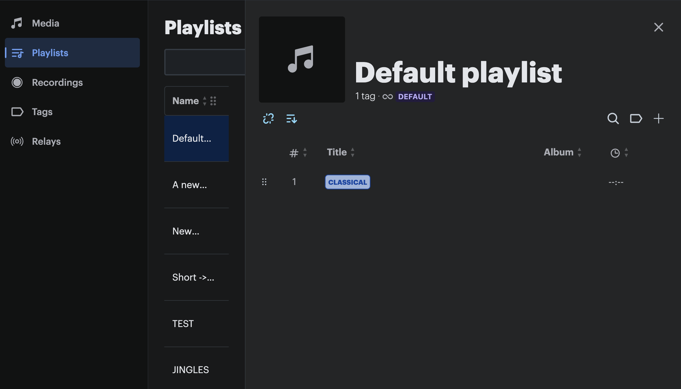 So when this playlist starts being broadcasted, your streaming server will “randomly” choose a piece of media with the CLASSICAL tag. Then it will keep repeating this process for the duration of the event the playlist is assigned to. It will also ensure for each subsequent track selection that a different CLASSICAL-tagged piece of media will be broadcasted (where possible).